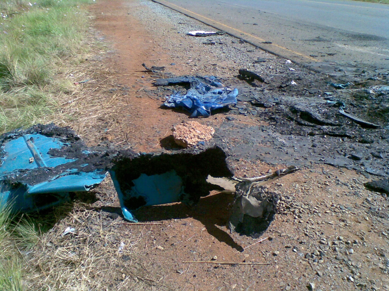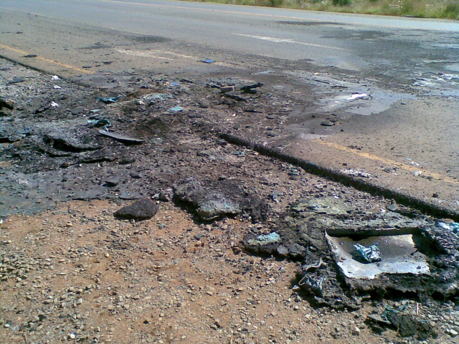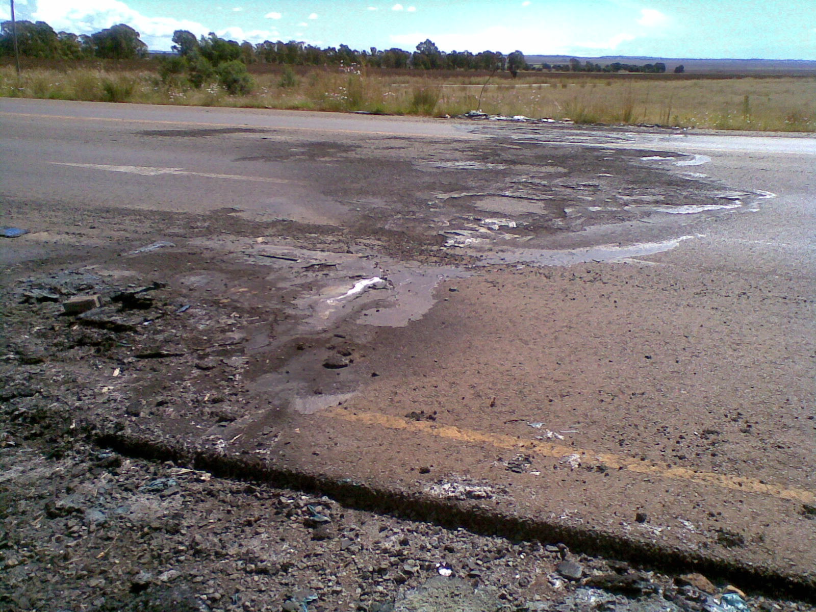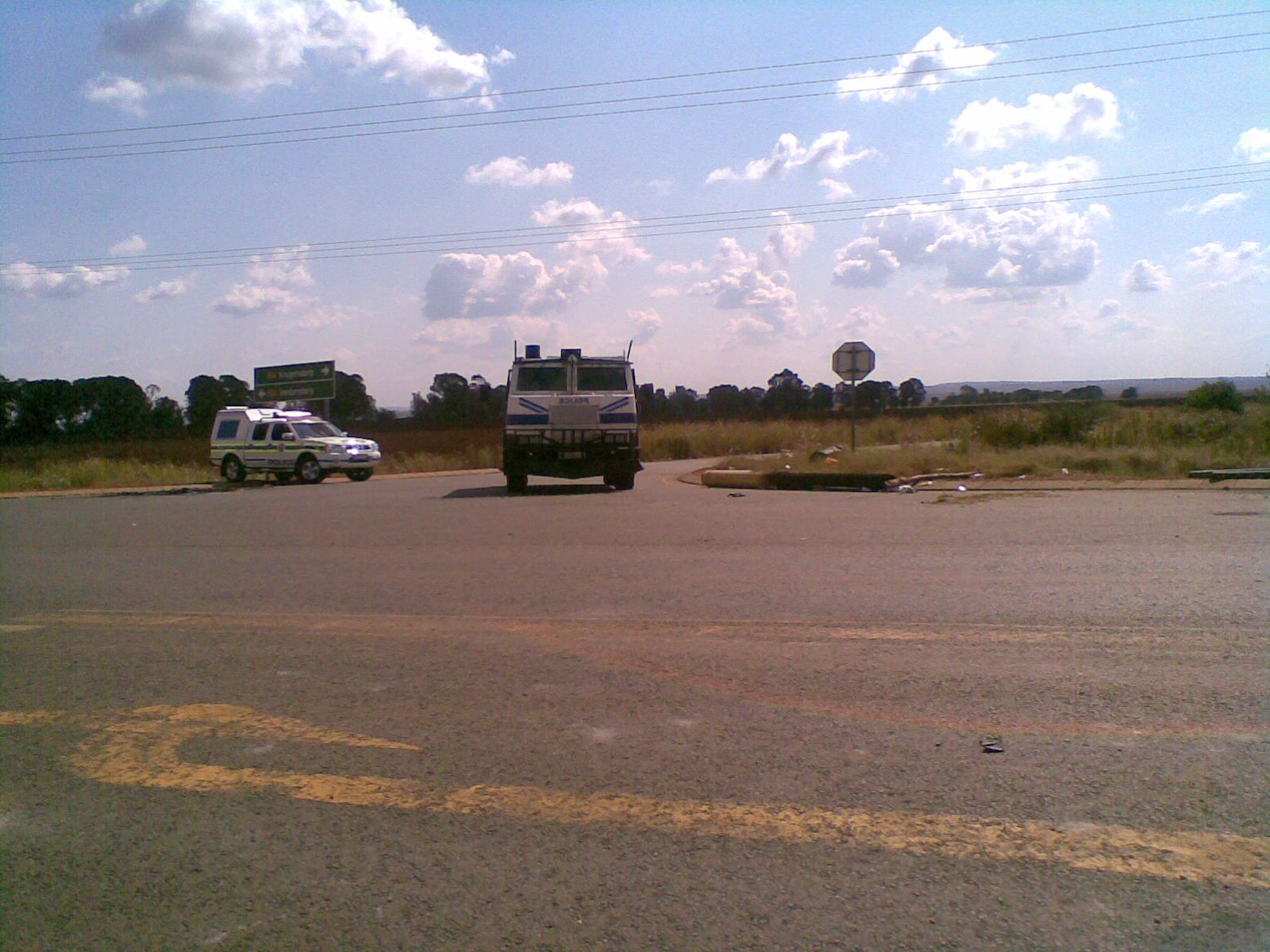 Munisipale werkers het onlustig begin raak tydens hul optog by die Brandvlei-kruising (16 April) in Noordwes/Gauteng (20 km buite Krugersdorp, op die Moloto pad na Carletonville). Ek het ‘n paar foto’s geneem van die gevolg van hul ‘vreedsame’ optog, wat ek nie dink in die koerante verskyn het nie: