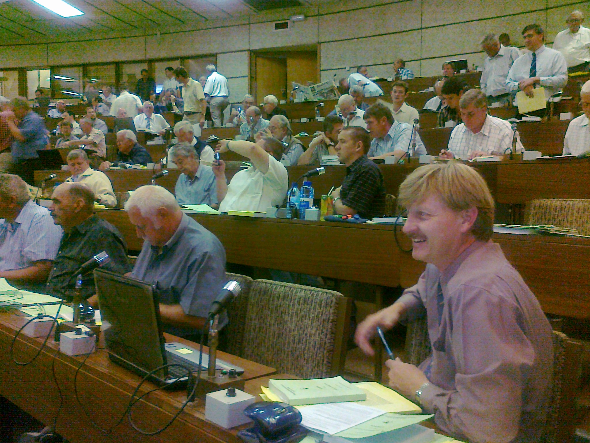 10h30: daar was nou ‘n baie lang teetyd [tot 12h00] waarin die moderamen besluit het hoe om die VIDA gedeelte van die sinode te hanteer, wat besig is om op te bou in die sinodesaal. Enige orde-voorstelle kan nou ingegee word vanuit die vergadering hoe om dit saak in geheel te hanteer. Hoekom dit nodig is, weet ek nie. Eierdans ?