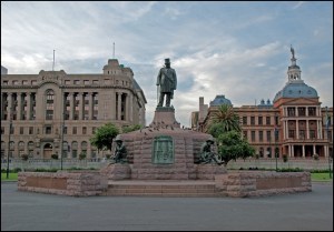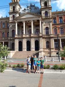 Terwyl ons na die monument stap, sien ons eintlik hoeveel boemelaars daar oor die kerkplein verstrooi is, maar hulle is nie naby ons nie, so ons stap voort. Intussen kom daar ‘n sekuriteitsvoertuig ook aan, en ons voel heelwat veiliger. Ons neem ons fotos by oom Paul, wat, soos ons almal, agter hoë heinings moet skuil teen die vandalisme en misdaad, maar die kinders is bly dat hul oom Paul se standbeeld tenminste kon gesien het. Uiteindelik is dit ook deel van hul geskiedenis waarvoor hul lief is en van wil leer. Ons besluit om toe te stap in ‘n suidwestelike rigting om daar voor een van die mooi ou geboue nog ‘n foto te neem. Oppad daarheen, voel ek skielik baie onrustig, dit was asof ek skielik besef, maar dit is nie baie veilig hier nie, ons neem vinnig ‘n foto, en ek sê vir die kinders om moet nou vinnig by die Kombi kom, om seker te maak alles is nog reg met Mamma en die kleiner kinders.