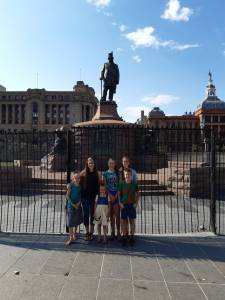 Paar van my kinders voor die heining van oom Paul se standbeeld