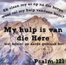 “’N BEDEVAARTSLIED. Ek slaan my oë op na die berge: waar sal my hulp vandaan kom? My hulp is van die Here wat hemel en aarde gemaak het.” (Ps 121:1–2)