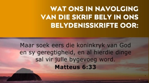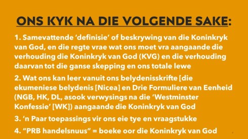Die skyfies van die aanbieding kan hier gelees word: Koninkryk en Belydenis