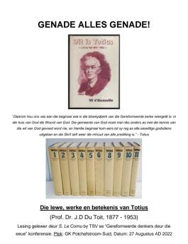 Ek het ‘n lesing oor Totius se lewe en betekenis aangebied by die Gereformeerde Denkers deur die eeue Konferensie, op Saterdag 27 Augustus 2022, by die GK Potchefstroom-Suid, aangebied deur die Teologiese Studentevereniging.