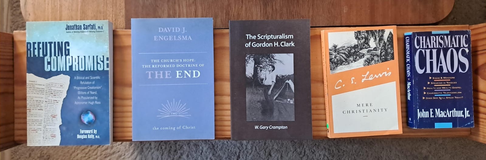 VLNR: Refuting Compromise with Evolution, Sarfati R70; The End eschatology, DE Engelsma R130; Mere Christianity, CS Lewis R70; Charismatic Chaos, J. MacArthur R60