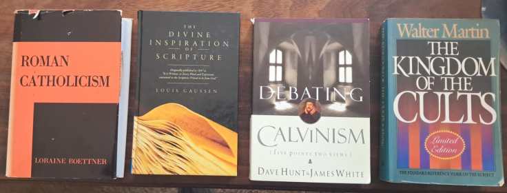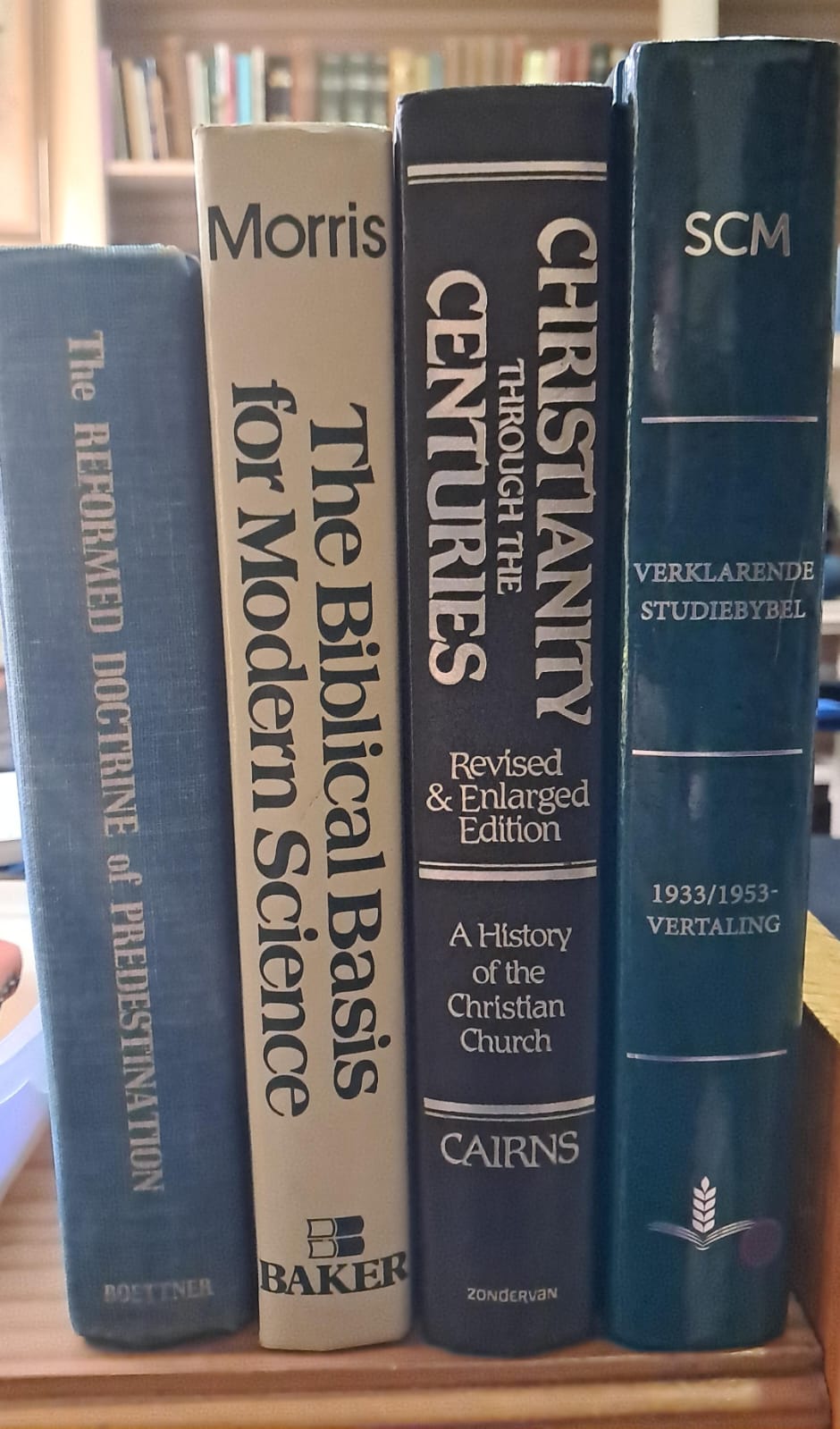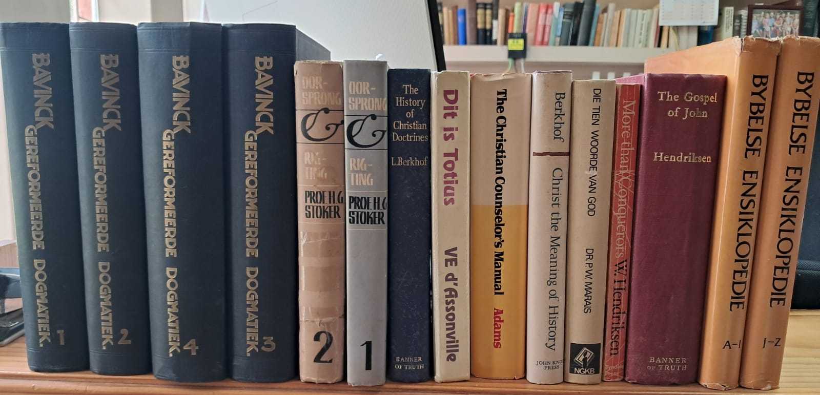 VLNR: VERKOOP!; Oorsprong&Rigting, HG Stoker, 2 dele: R200; History of Christian Doctrines, L. Berkhof, R120; verkoop; verkoop; Meaning of History, H. Berkhof, R100; More than Conquerers (comm. on Revelation), Hendriksen, R100; Gospel of John commentary, R150; Bybelse Ensiklopedie, x2 dele, R200.