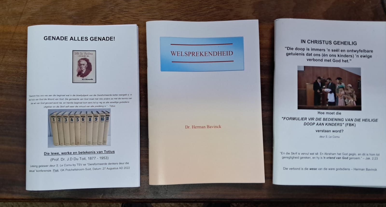 R80 (die Geloofsleer deel is deur ds. SJ vd Walt, goeie ‘kleine dogmatiek’ vir katkisasie doeleindes); R100, meer inligting oor hierdie boek hier: