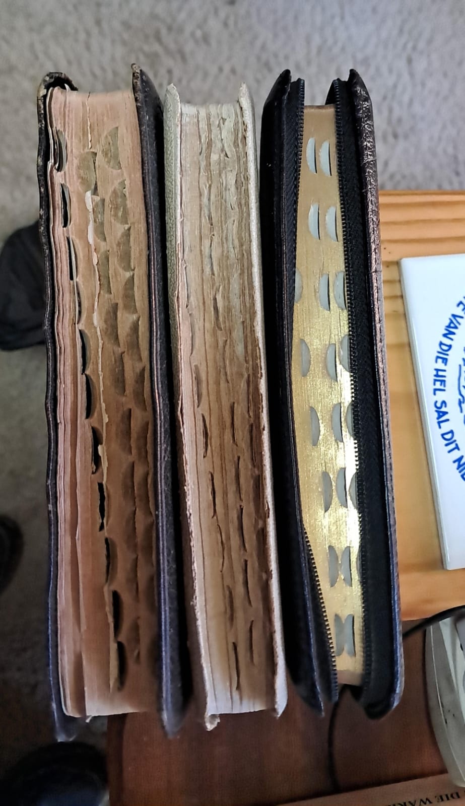 - Die Familiebybel: grootdruk, geslagsregister en familieregister (party plekke is daar reeds name), grootte: 23cm by 15cm (sien fotos hieronder): R700-00