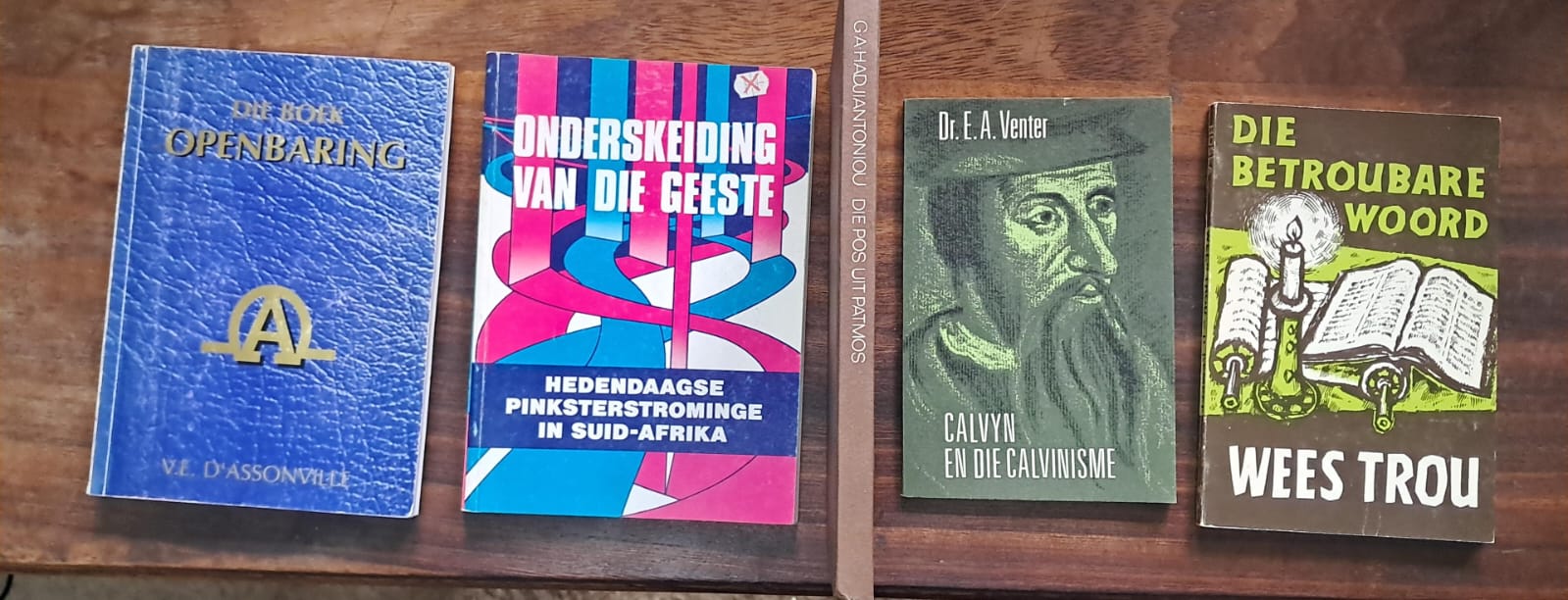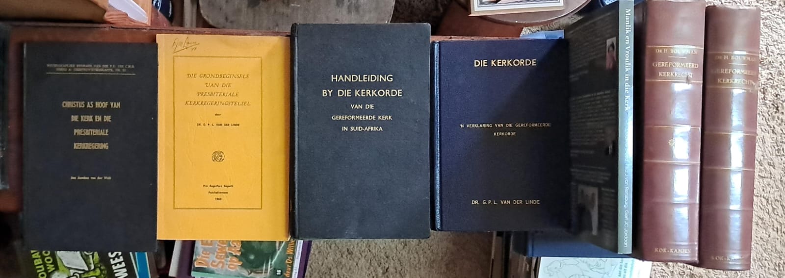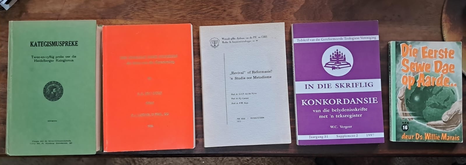 VLNR: Dirk Postma, GCP vd Vyver R90; Dwaasheid om te Preek, VE d’Assonville R40; HK verklaring, VERKOOP; Dogmatiek, JA Heyns R130; Nuwe mens onderweg – tien gebooie verklaring, JA Heyns R50