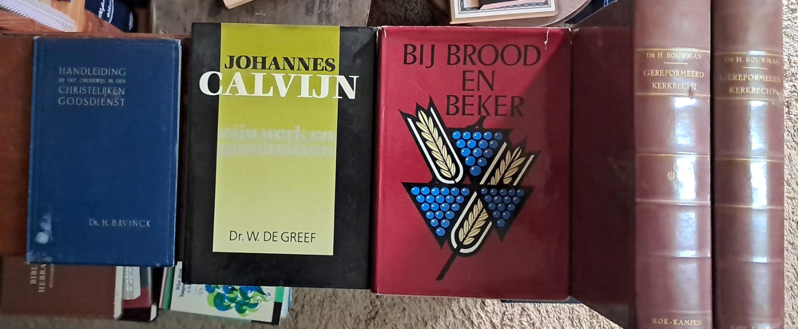 Nederlandse boeke: R80 (baie goeie verkorte weergawe van Bavinck se dogmatiek vir ouers, onderwysers, ens.); R150; R200; R200 vir stel