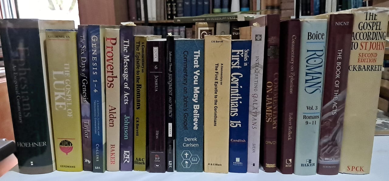 ENGELSE KOMMENTARE: Psalms- Plumer R200; Hendriksen: R100; Luther kommentare R70-00 elk; Hodge: R100; Hoeksema: R200; res van die kommentare is tussen R50-R80, doen navrae oor pryse.