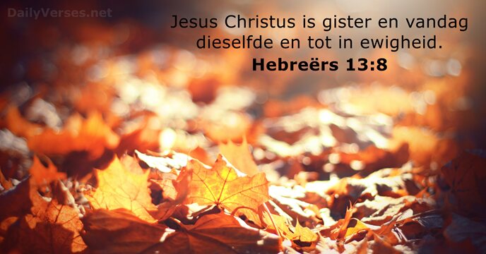 Deur die geloof het hy Egipte verlaat sonder om die toorn van die koning te vrees, want hy het volgehou soos een wat die Onsienlike sien.. En alhoewel hulle almal deur die geloof getuienis ontvang het, het hulle die belofte nie verkry nie, omdat God iets beters oor ons beskik het, sodat hulle nie sonder ons volmaak sou word nie. DAAROM dan, terwyl ons so ’n groot wolk van getuies rondom ons het, laat ons ook elke las aflê en die sonde wat ons so maklik omring, en met volharding die wedloop loop wat voor ons lê die oog gevestig op Jesus, die Leidsman en Voleinder van die geloof…. “Jesus Christus is gister en vandag dieselfde en tot in ewigheid.” (Hebr. 4:1,2; 11:27, 39-12:2; 13:8)